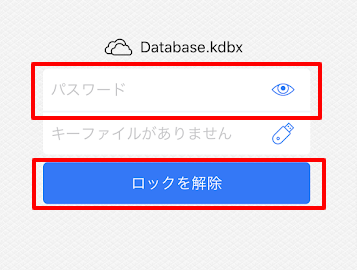 画面がパスワードの入力画面になるので、マスタパスワードを入力し、ロックを解除をタップします。