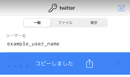 ここで、ユーザ名またはパスワードをタップすると、それぞれがクリップボードにコピーされます。
