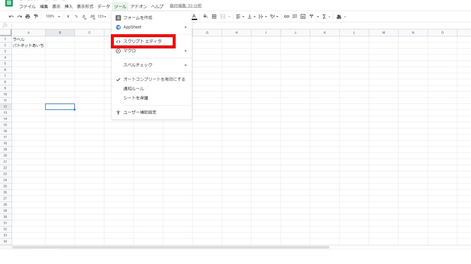 次に、ツール>スクリプトエディタを開きます。