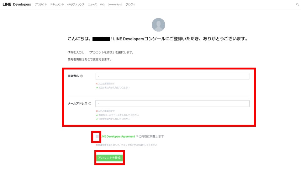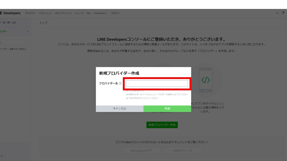 LINE Developersに登録