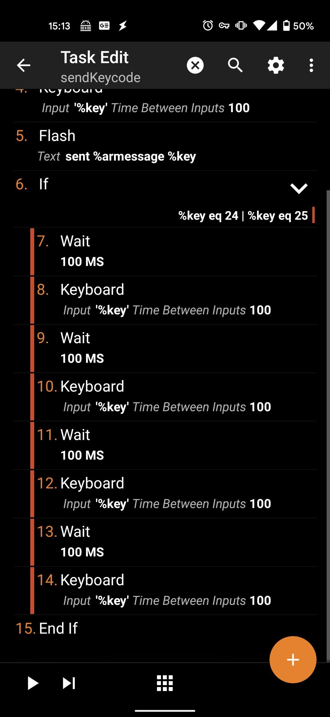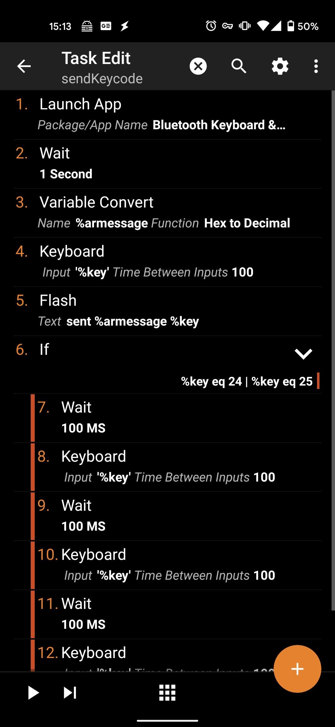 if文で追加の動作をしているのは、音量のボリュームアップとボリュームダウンです。これは、一回のキーコード送信ではほとんど音が変わらないためです。本当はfor文で回すべきですが、横着して3回直書きで実行しています。