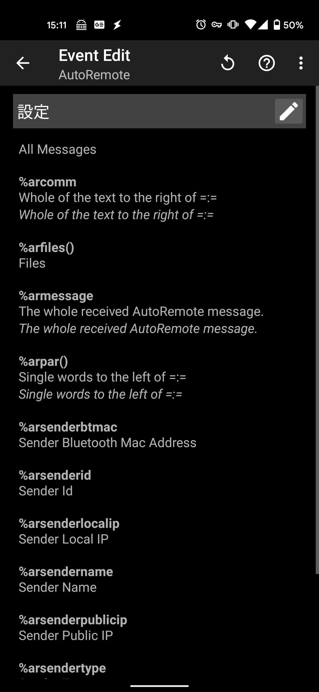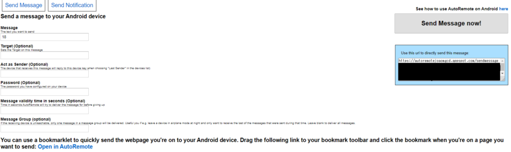 ここで、キーとしている箇所は、先程のAutoRemoteのテストで開いていたブラウザの送信ボタンの下にあったコードのうち、key=以降から&messageの前までの文字列になります。