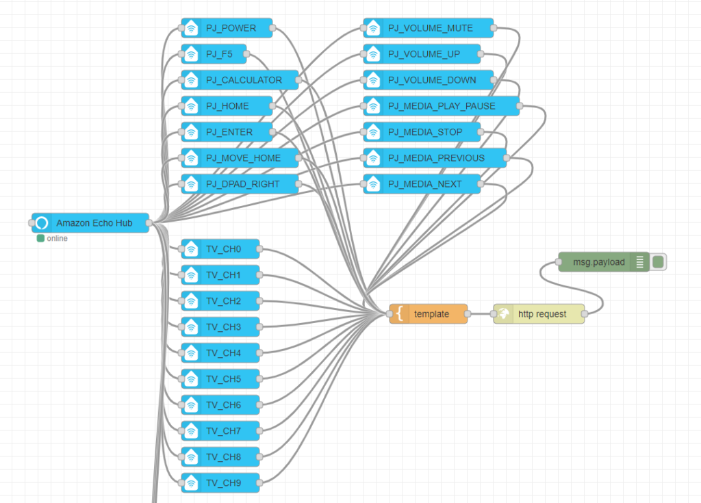 我が家のNode-REDは下図の感じになっています。