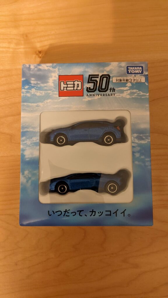 2021年はトミカ50周年記念特別カラーのスポーツカーセットでした。
