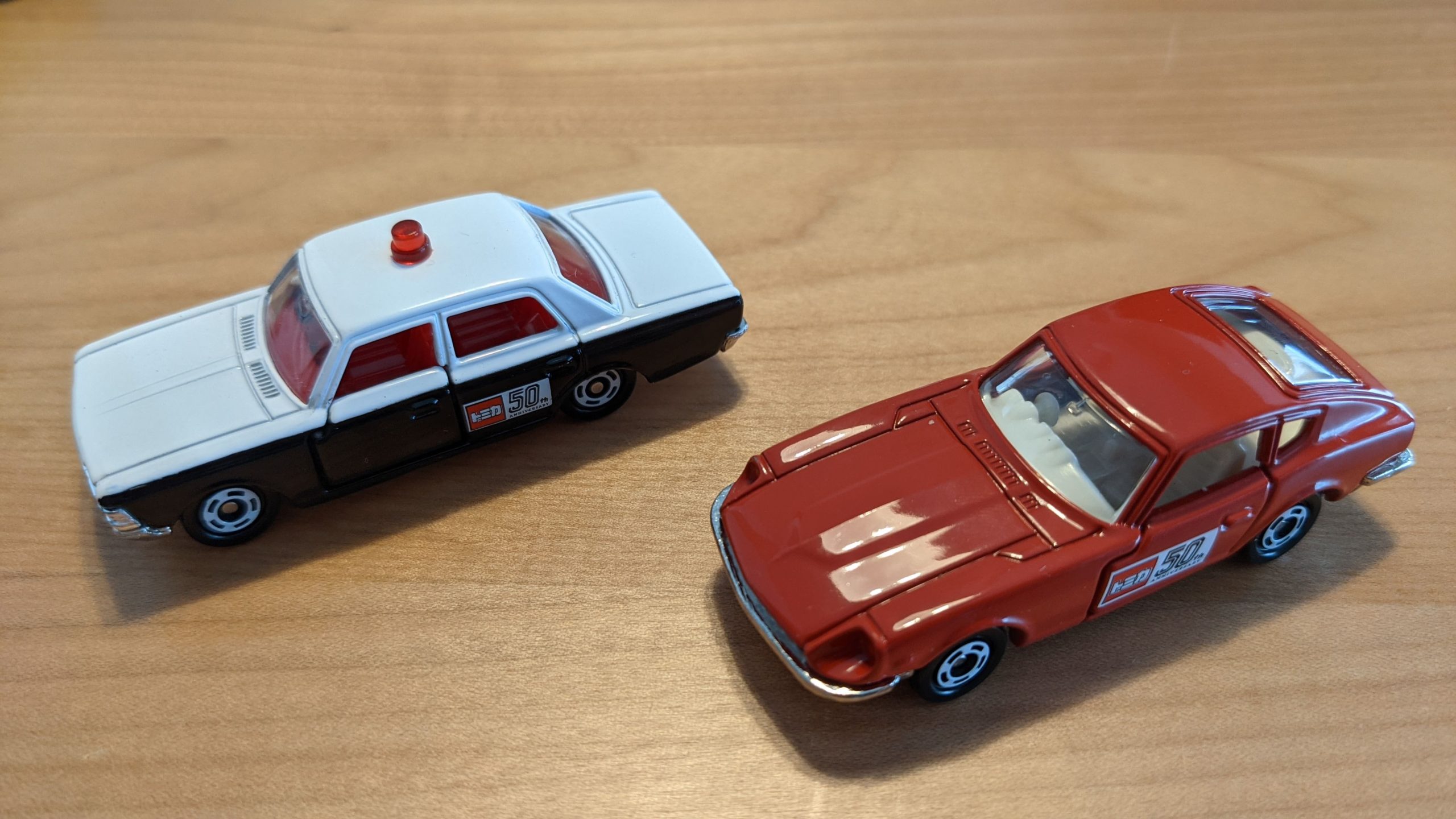 2020年は、トミカの50周年のようで、復刻版風のパトカーとフェアレディZをいただきました。