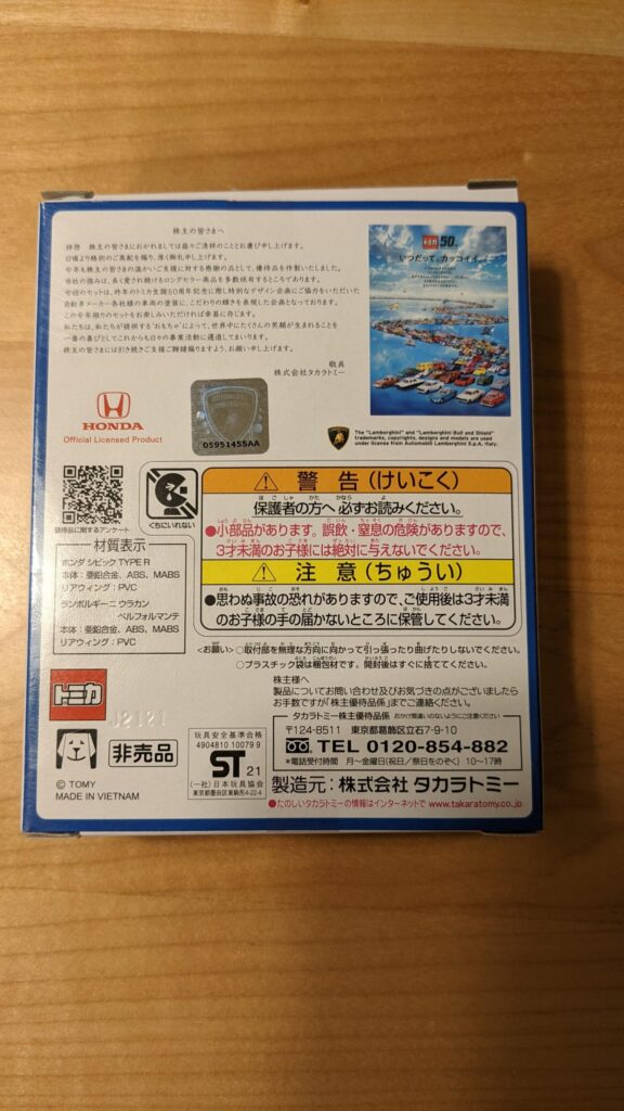 先日、2021年のタカラトミーさんの株主優待品が届きました。